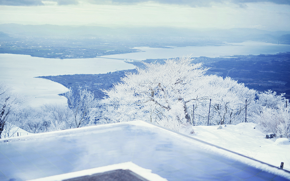 びわ湖バレイの最大の魅力は、なんといっても、琵琶湖を望む絶景でしょう。ロープウェイからでも、びわ湖テラスからでも、さらには、スキー&スノーボードの滑走時でも、どこからでも日本最大の琵琶湖を一望できると評判です。