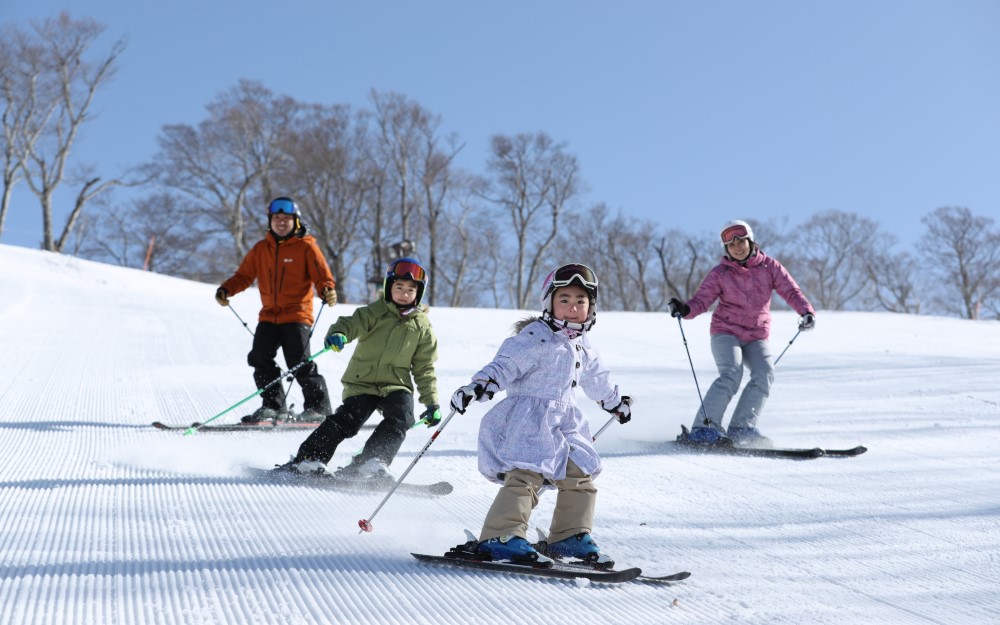 ゲレンデは初・中級向けの緩やかなコースが多く、初心者やファミリー向き。とくに、平均斜度5度、最大でも10度しかない「ファミリーコース」はスキー&スノーボードデビューにぴったり! 安心して練習できると評判です。