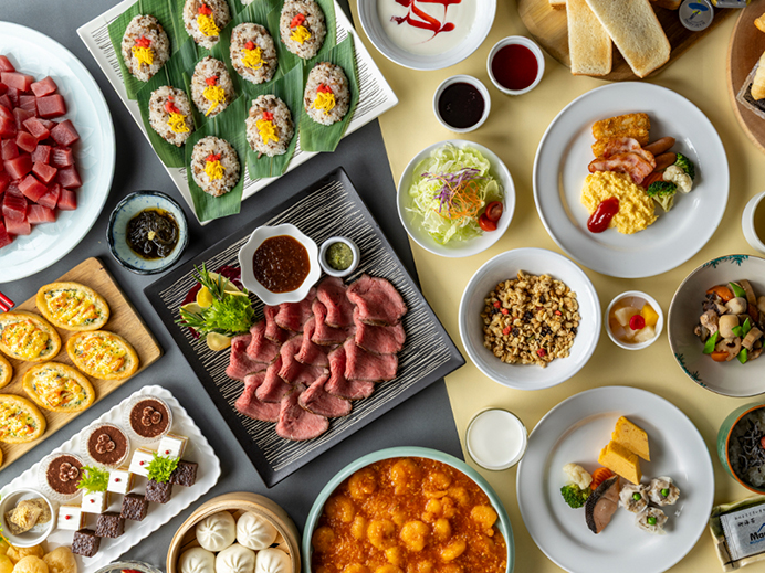 ローストビーフやお寿司、エビフライなど子供の大好きなメニューもたくさん。子供用食器やカトラリーも揃っているので安心です。