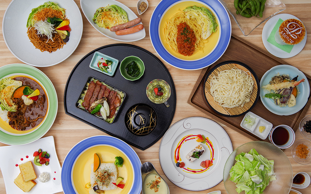 ブッフェ形式の「レストラン しゃくなげ」はファミリーにおすすめ。和食や洋食、中国料理、スイーツなどを提供しており、朝食・ディナー、それぞれの時間帯で利用できます(ランチ・ティータイム営業あり)。