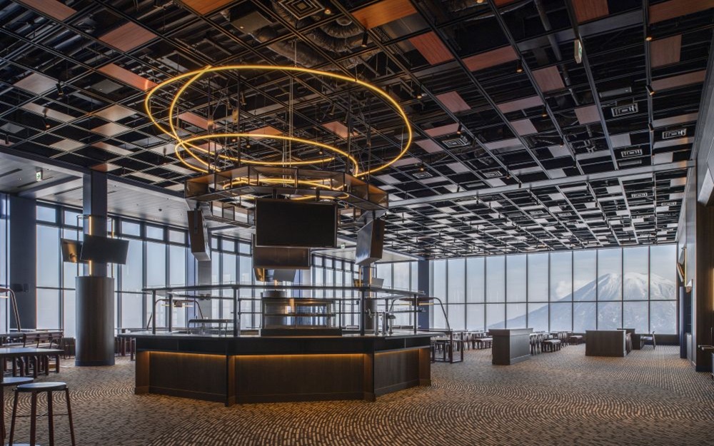 食の拠点がふたつ新設されている点も見逃せません。ひとつは、エースゴンドラ山頂駅舎2階に登場した「NEST813」。まるで、高級ホテルのような雰囲気の店内から“蝦夷富士”羊蹄山を一望する絶景レストランです。