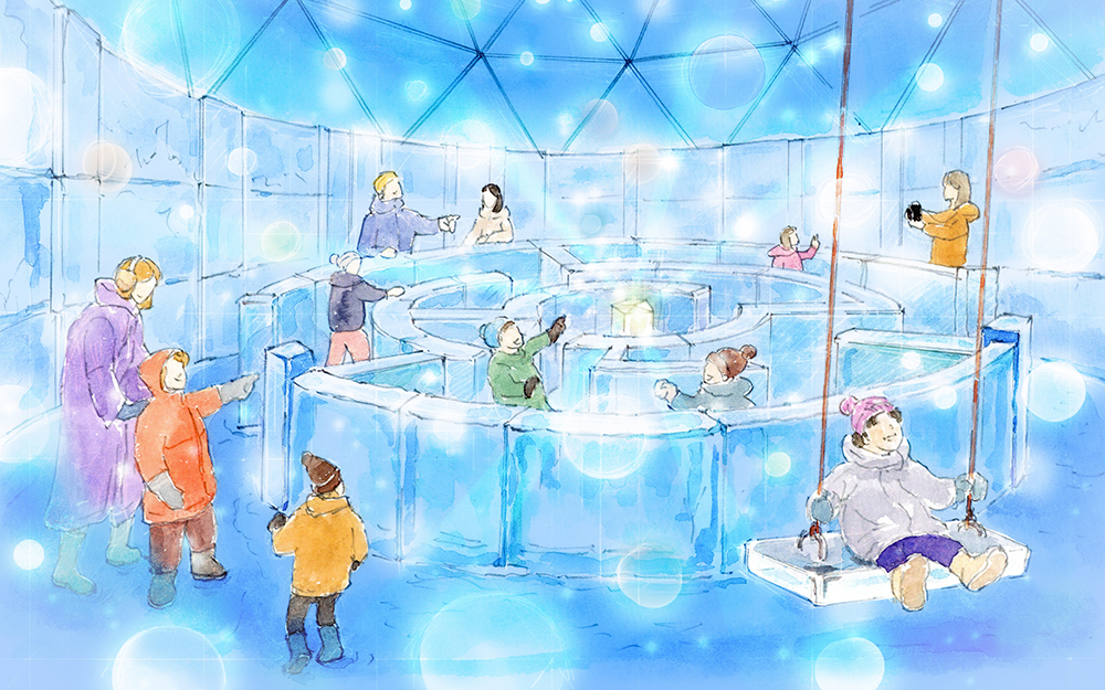 そして、オリジナルのチョコレートやホワイトショコラアイスなどを自分で作って食す「氷のスイーツショップ」。ひんやりとしたトンネルをくぐったり、様々なルートを散策する「氷の迷路」にも注目ですね。