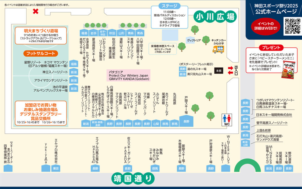 ■イベント内容:スキー場ブース出展/早割リフト券販売(WINTERPLUS)/明大まちづくり道場(ストラックアウト・ワークショップ)/POW JAPAN(POWロゴのシルクスクリーン)等