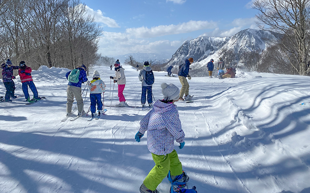 天然雪100%の豊富な積雪量が自慢で、ワイドな緩斜面からアイテム充実のスノーパークまで、バリエーションも豊富。小学生以下はいつでもリフト無料。2026年3月上旬まで営業予定のナイターも人気です。