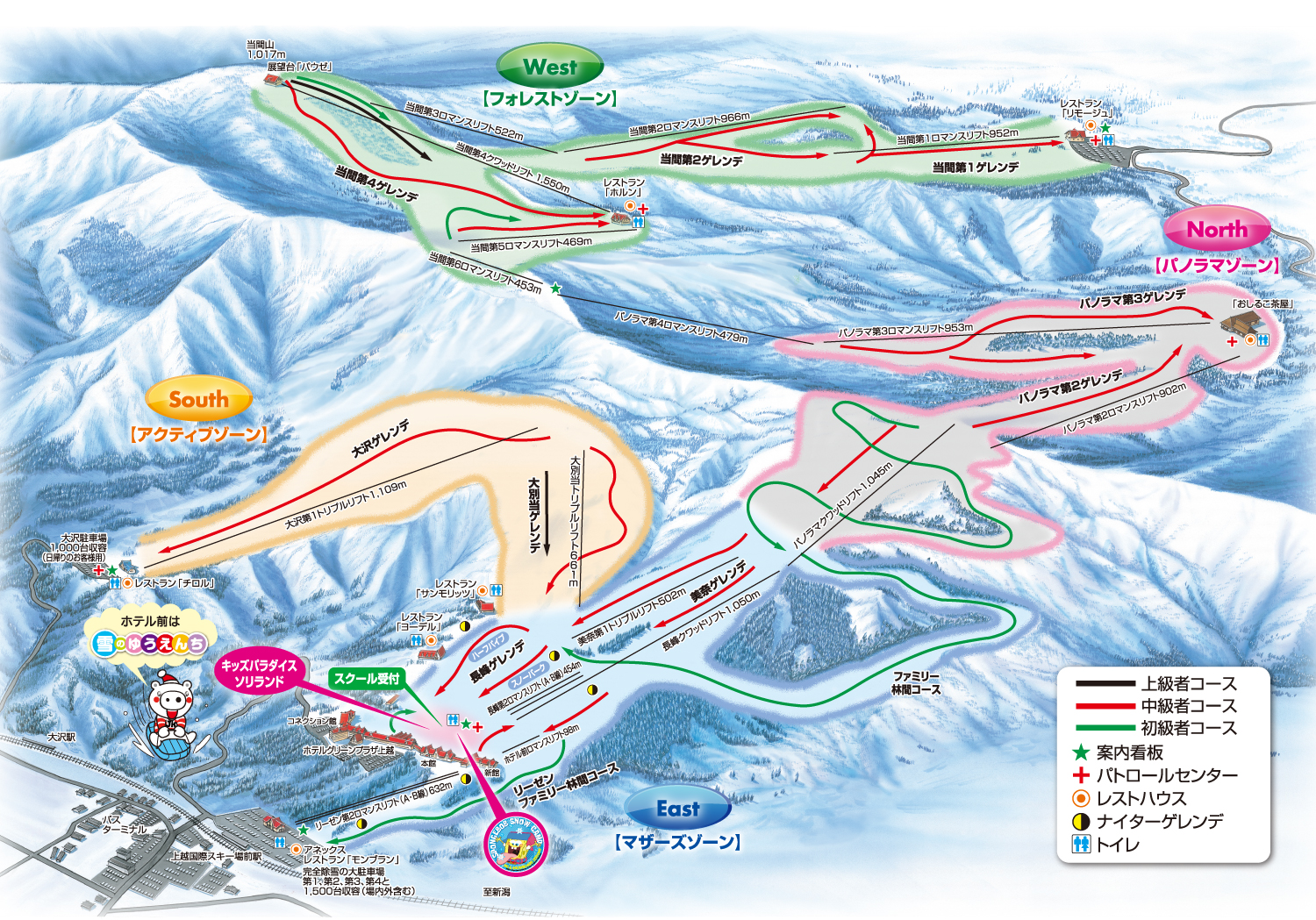 「上越国際スキー場(上国)」(新潟 南魚沼市)は総面積1000万平米という日本を代表する巨大スノーリゾート。4つのゾーンからなるゲレンデはバリエーションに富み、レベルを問わず楽しむことができます。ホテル前ゲレンデには「キッズパラダイス」「ソリランド」などが並び、まさに、そこは“雪のゆうえんち”。