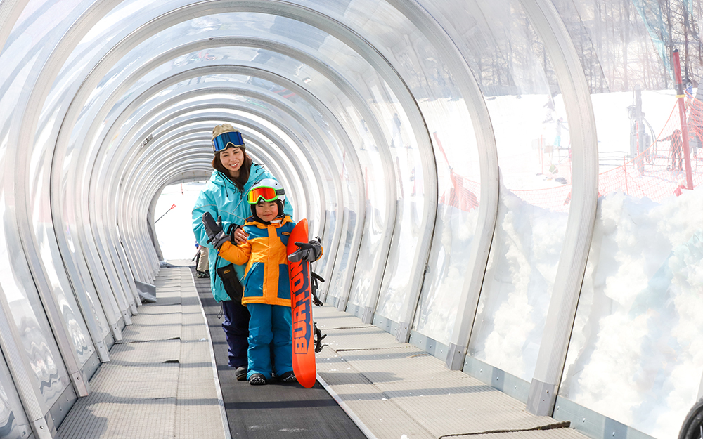 ファミリーにはスキー&ボードの練習だけでなく、そり遊びも楽しめる屋根付き動く歩道完備の「ファーストステップゲレンデ」がおすすめです。