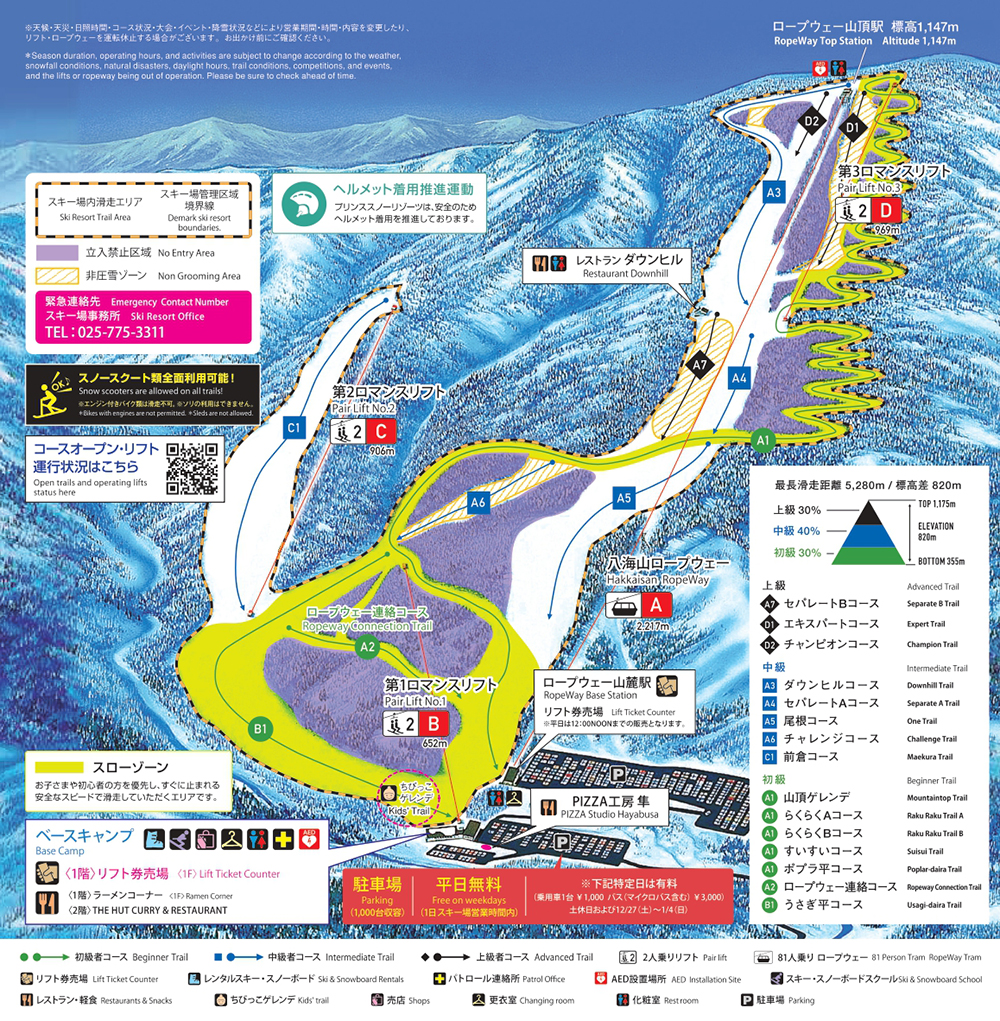 標高トップ 1175標高差 820ベース 355