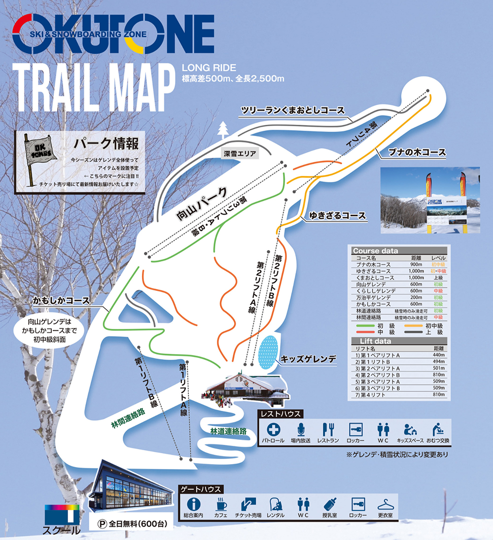 ゲレンデは全10コースとコンパクトながら、標高差500m超&全長2,500mものロングライドが楽しめます。最新鋭の人工降雪機でコンディションも常に抜群。小学生以下はリフト券がいつでも無料な点も要チェックです。