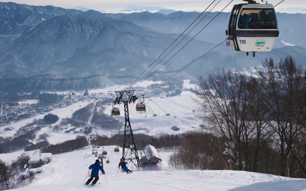 「つがいけマウンテンリゾート」の山頂とベースとの標高差はなんと904m! ゴンドラリフト「イヴ」で一気に行ける山頂エリアなら、春でも極上の雪を滑ることができると好評を博しています。